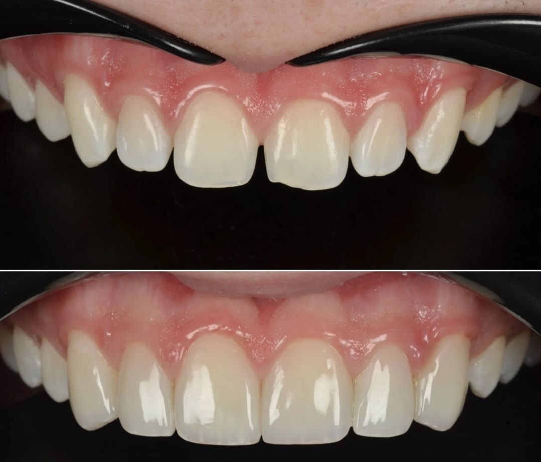 Diseño de sonrisa con resina, cerámica, blanqueamiento dental, recorte de encía, implantes dentales.